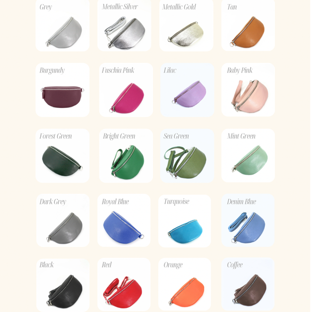 The perfect everyday choice! Our Phenomenal Sling Bags are crafted from beautiful Italian leather and come with a matching detachable strap. There is a zipper closure on top with silver zip hardware. The bag has just the right amount of space for a small purse, phone and a few essentials. There is a small internal pocket. Check out the Phenomenal Coin Purses for a matching purse that fits perfectly inside! More colours are available on request - please contact us if you would like a shade that isn’t showing in the drop down list and we can order one in for you.